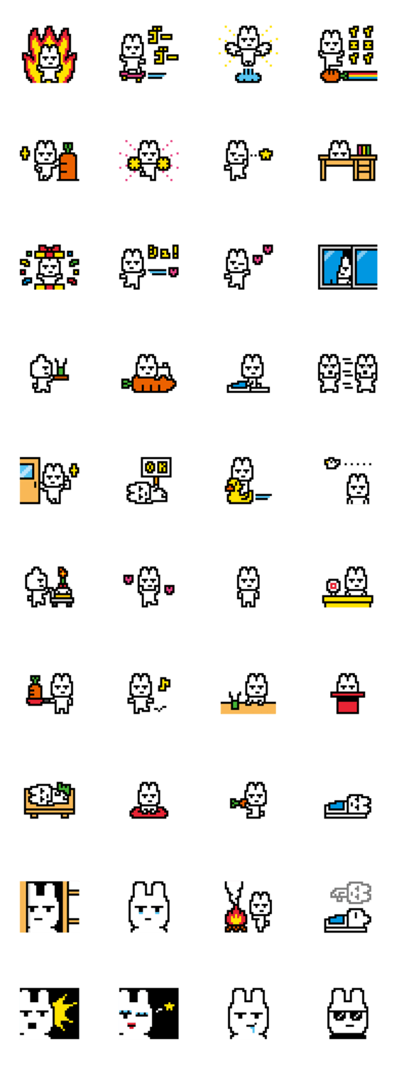 | スタンプ説明 | にんじんを抱きしめたり抱きしめなかったり。シンプルドット絵スタンプ。 |
