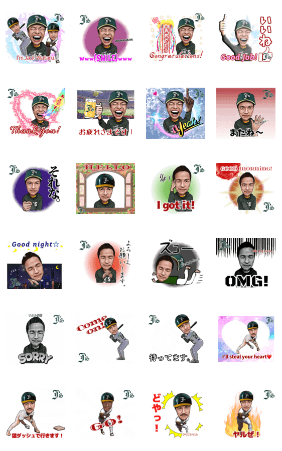 | スタンプ説明 | 米大リーグ野球をこよなく愛する『J's』ことJack Wataru Otaの楽しいスタンプです。 |