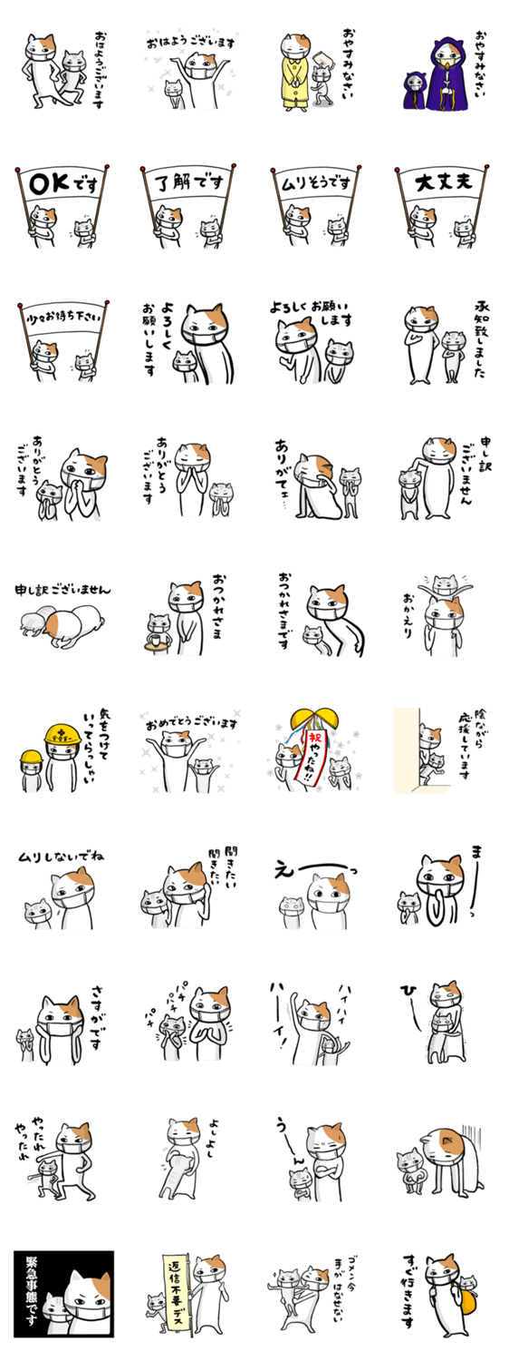 マスクねこダブル【敬語・挨拶】 -LINEスタンプマニア