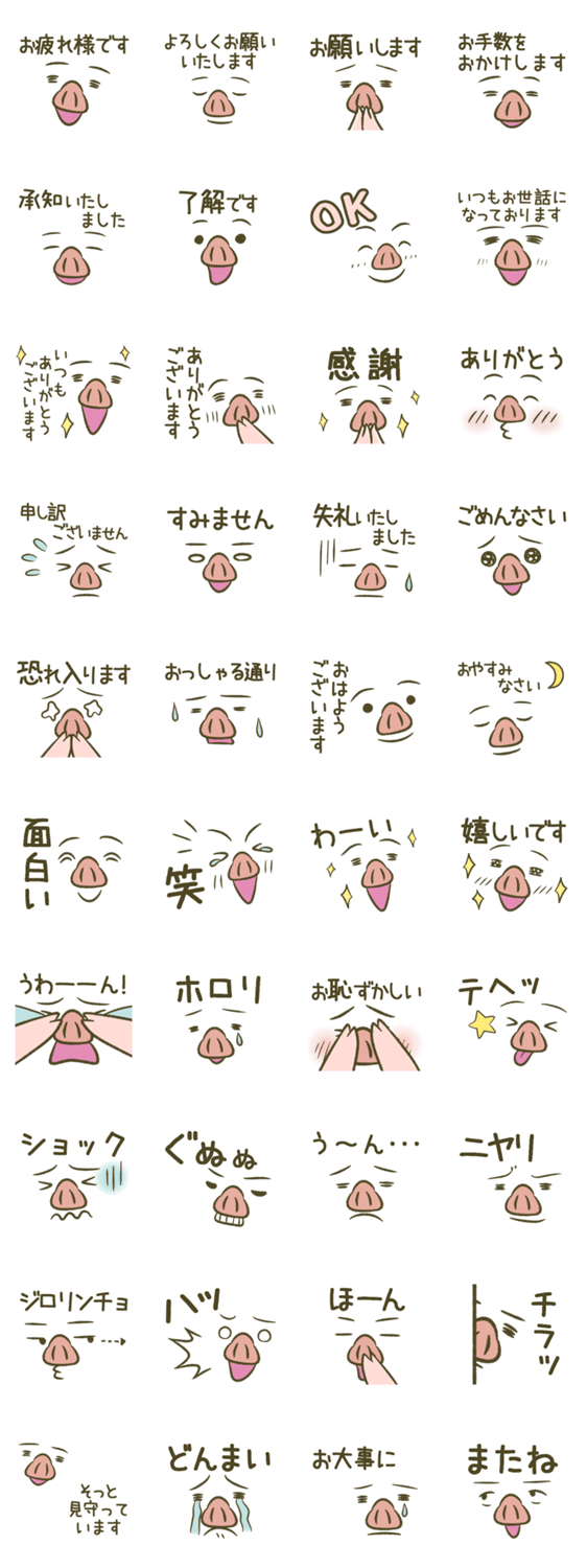 ぶたの世界。使い易い顔デカ文字/敬語/挨拶 -LINEスタンプマニア