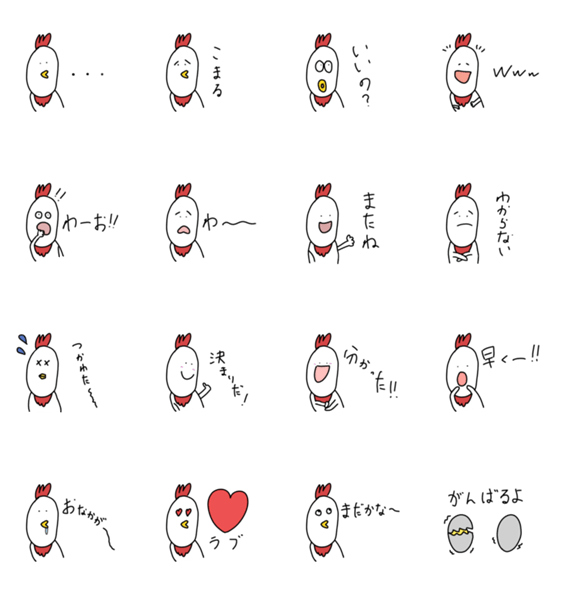 ニワトリスタンプです!! 色々な表情が特徴的!!!!