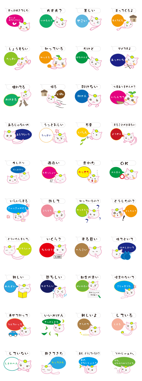 白ネコのあいうえお・・・ってるスタンプ