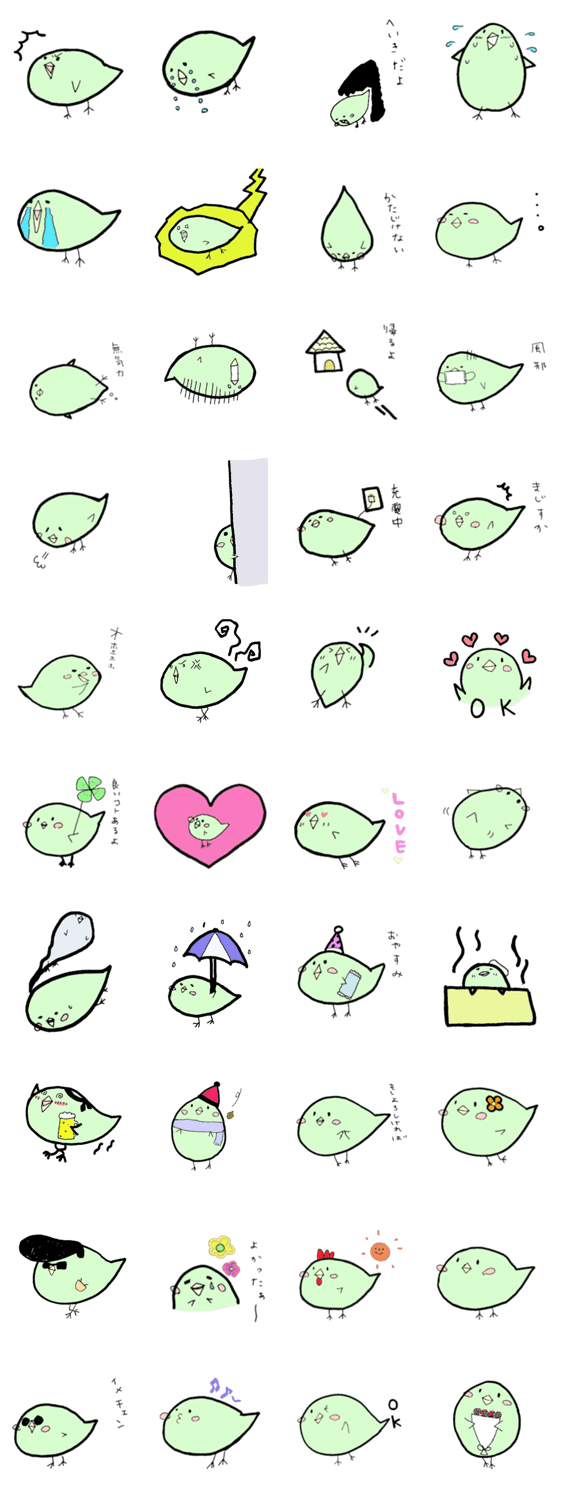 泣き虫なトリさんの表情豊かなスタンプ。手書き。。