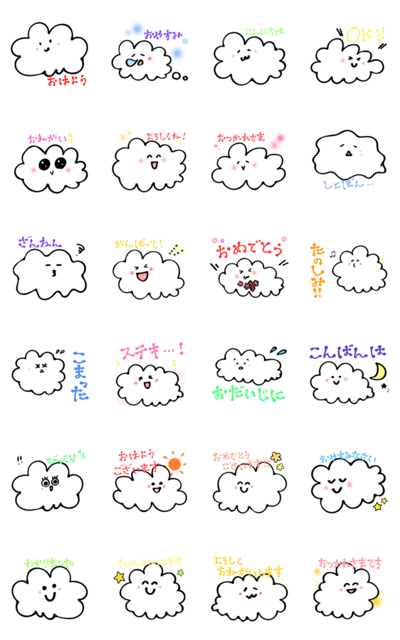 雲の子もこもこ☁よく使う言葉を集めました。毎日使える挨拶スタンプです。