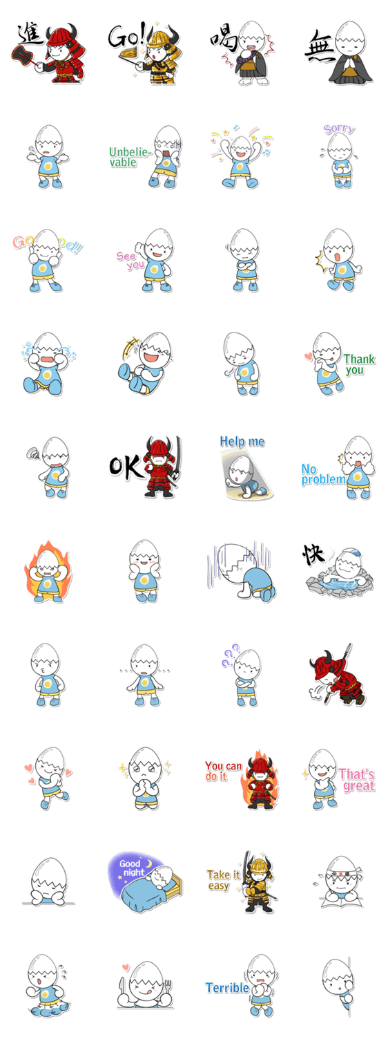 | スタンプ説明 | 本名は朝ゆでた。頭の上は玉子の殻がないので、つるっつるだよ。 |