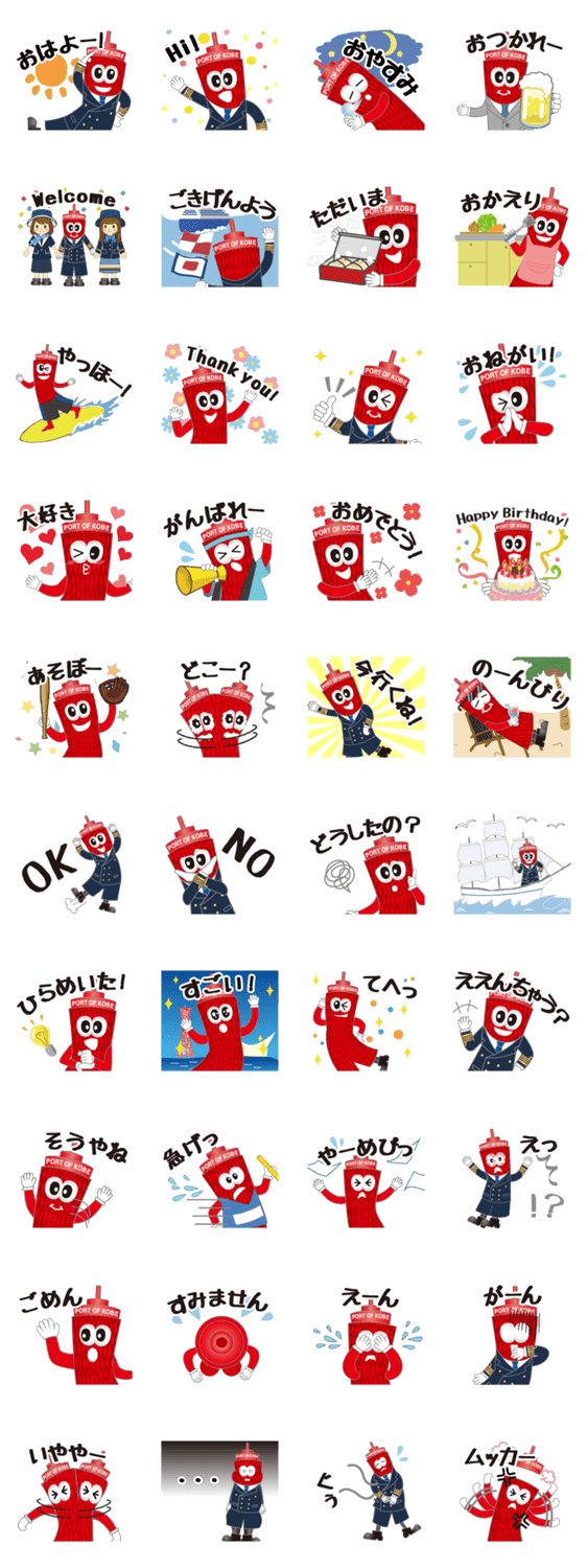 神戸を代表する観光地、神戸ポートタワーのマスコットキャラクターキャプテンタワー君のスタンプです。みんな遊びに来てね♪