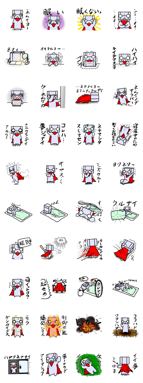 ロボットらしくないロボ第二弾。仕事や勉強をしていていつの間にか寝てしまう方のためのスタンプです。※常に寝不足・眠い方にもオススメです。
