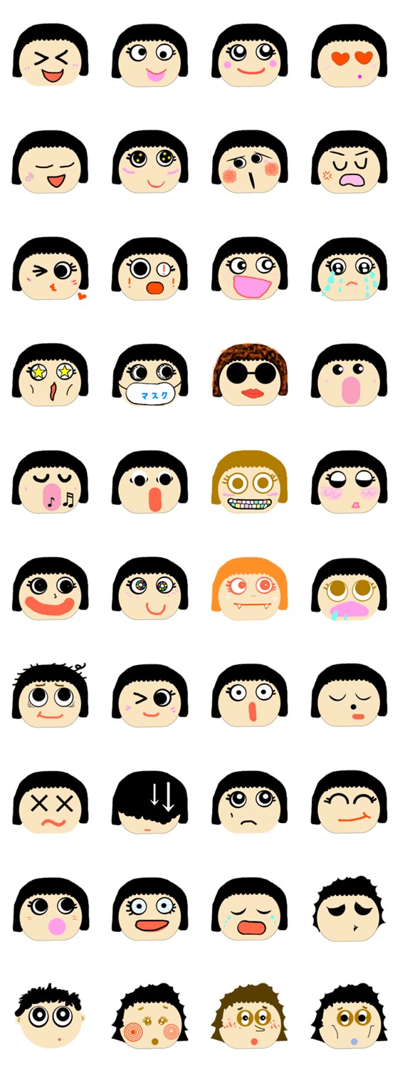 みんなで楽しめるスタンプだから毎日がハッピーに。ふざけてるけどなんか憎めない表情豊かな可愛い女の子♪