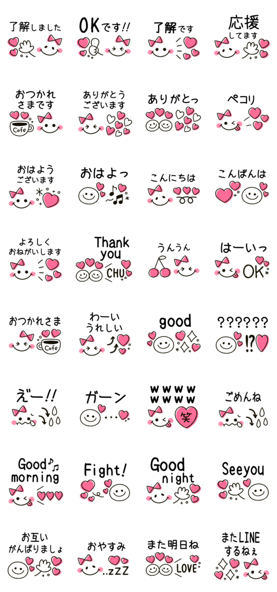 シンプルで可愛い毎日使いやすいスタンプです。 大人可愛いハートいっぱいのスタンプです♡ シンプルで可愛い毎日使える敬語や日常言葉を集めました♡