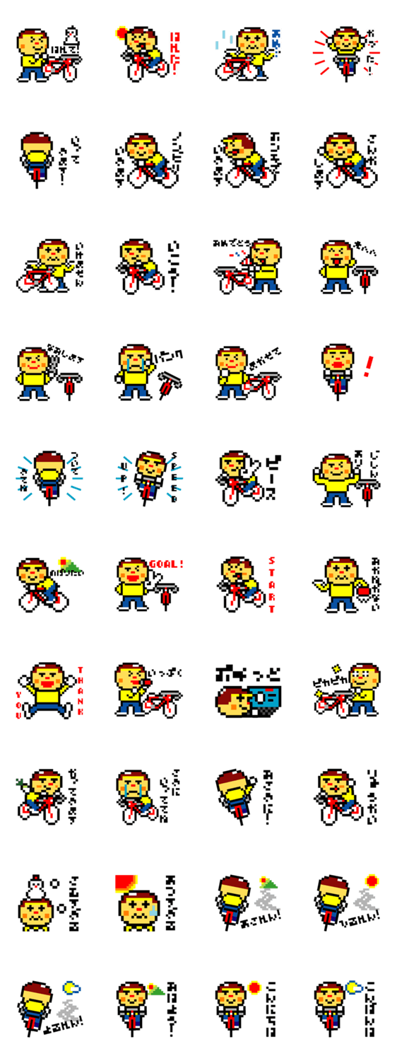 乗っていた頃を思い出しながらロードバイク好きなおじさんを スタンプにしてみました。 家族や自転車仲間とのコミュニケーションに使っていただけたら うれしいです。