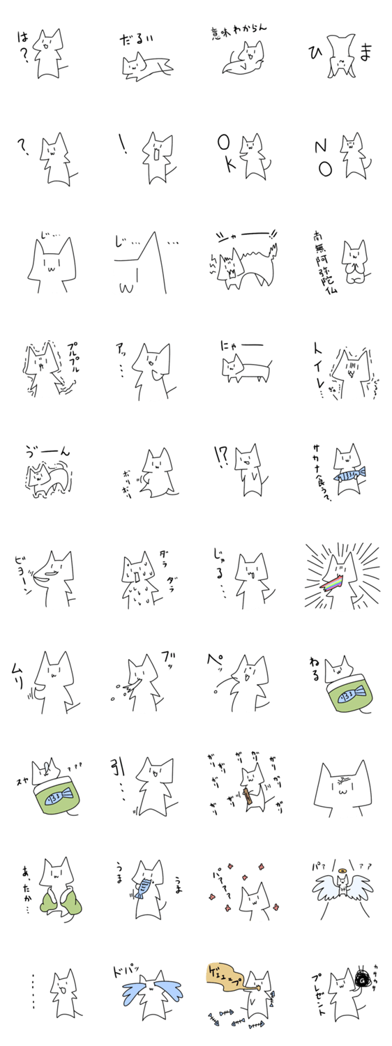 白ネコのあいうえお・・・ってるスタンプ