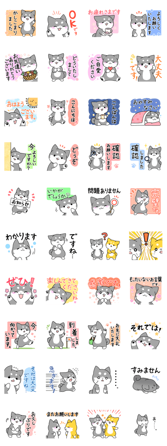 黒い柴犬の敬語スタンプです。使いやすいことばを集めました!あかしばもちょっと一緒に。