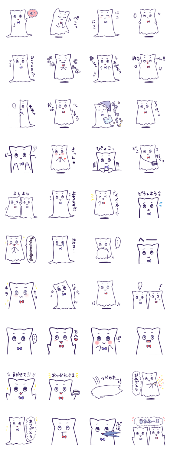 白ネコのあいうえお・・・ってるスタンプ