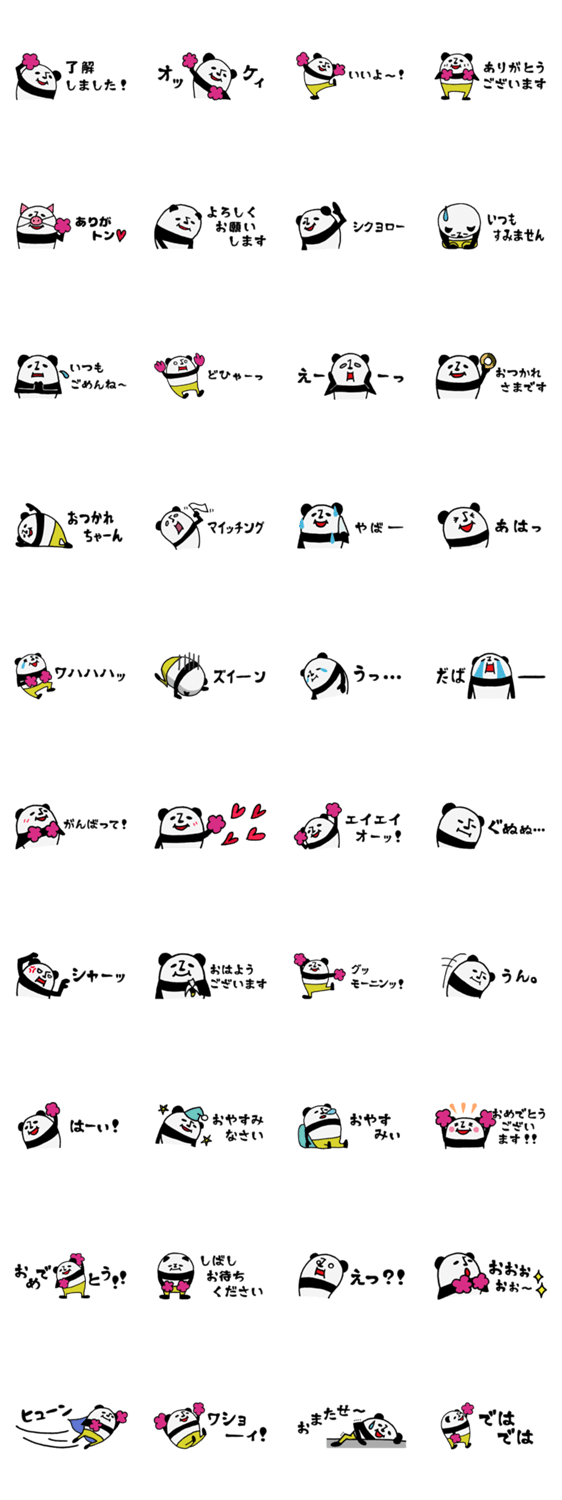 | スタンプ説明 | チアダンサーのパンダ、チアパンダーの省スペーススタンプ。敬語もあるので、いろんなトークで毎日使えます。 |