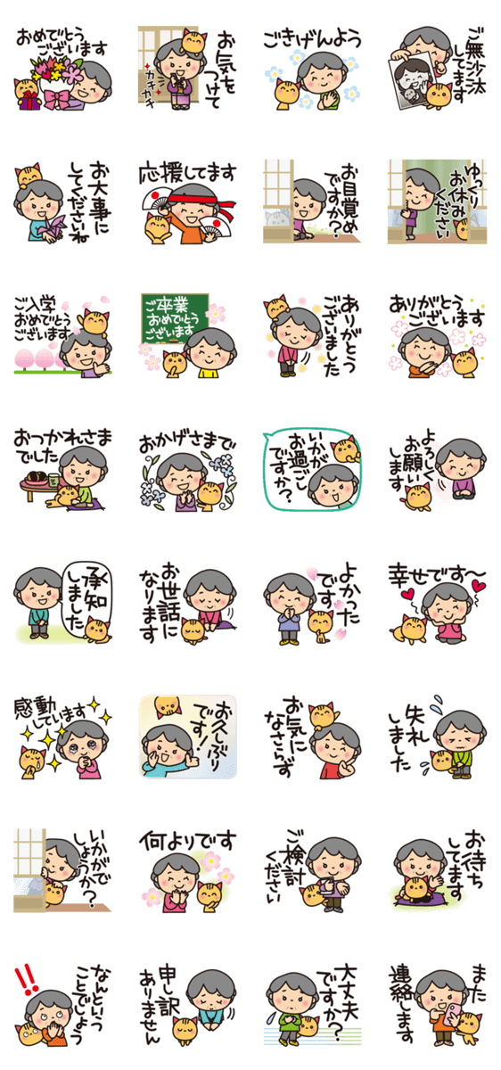 優しくてキュートな「ばぁば」のスタンプです。重くなりすぎず、使いやすい敬語・丁寧語バージョンです。