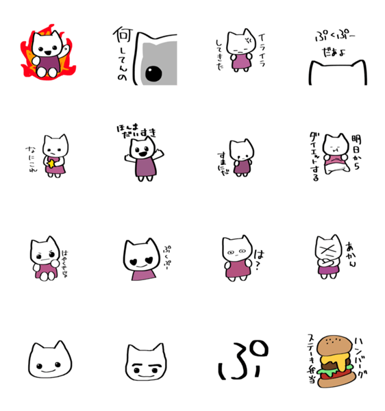 白ネコのあいうえお・・・ってるスタンプ
