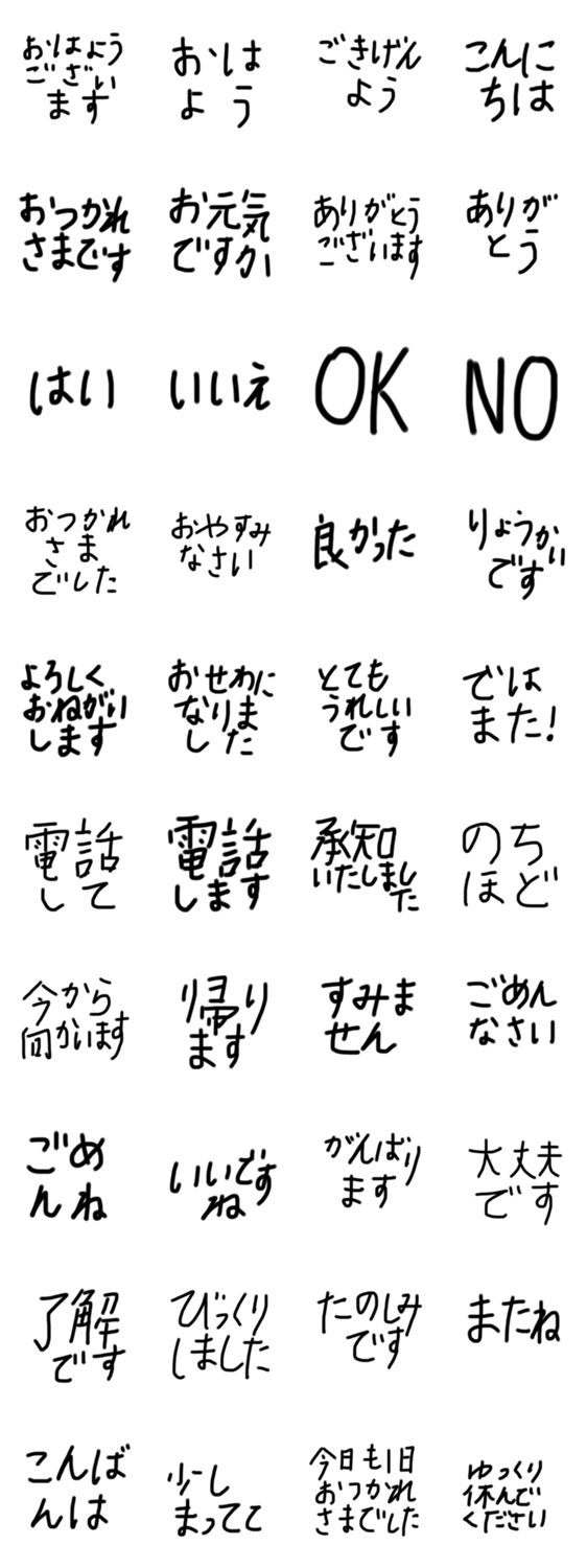 全て手書きの文字だから、気持ちも伝わりやすいかも。目にも優しい大きな文字。プライベートからビジネスシーンまで、日常会話に!