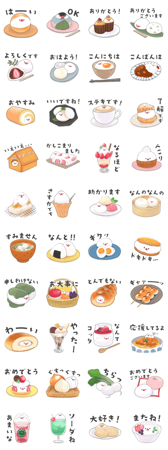いろいろば食べ物に扮している文鳥さんです。 間違えて食べないように気をつけましょう。
