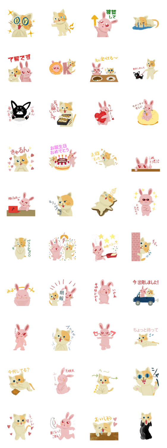 子猫プクと兎のピンクルリンのスタンプ -LINEスタンプマニア
