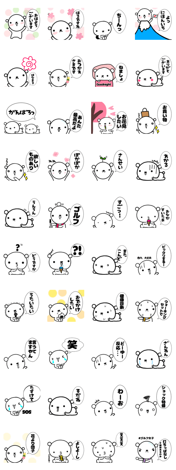 くましゃんの、春ですねえスタンプです。暖かくなってお外に遊びに行きたいくましゃんです♡
