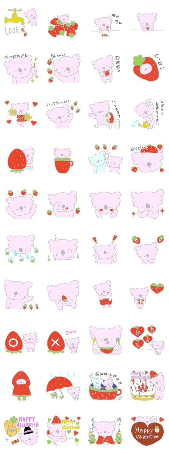 のんびりコアラ3(いちご) -LINEスタンプマニア