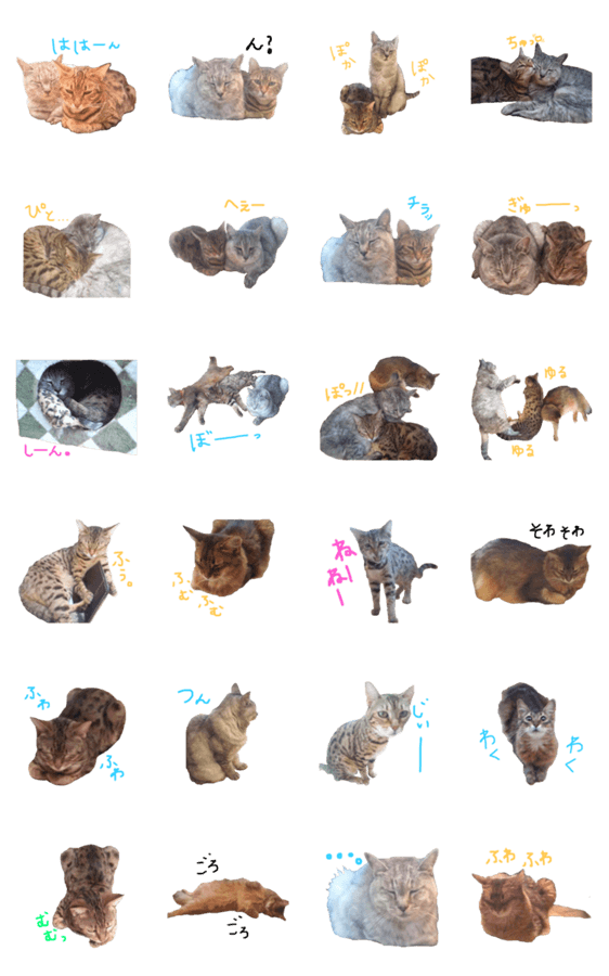 実家のほのぼの猫さんたちをスタンプにしてみました。3匹の表情に注目です!