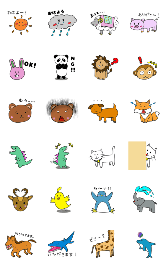 毎日の会話トークでも使える、ゆるい動物のスタンプです。 うさぎやパンダにペンギンまで色々な動物を使いたい方にどうぞ。