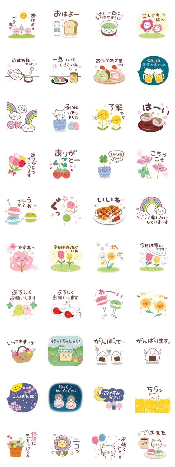 ほっこりやさしい春スタンプでまいにち癒されたい♪ 年齢問わず、誰でも使えます♪敬語もたくさんあり!