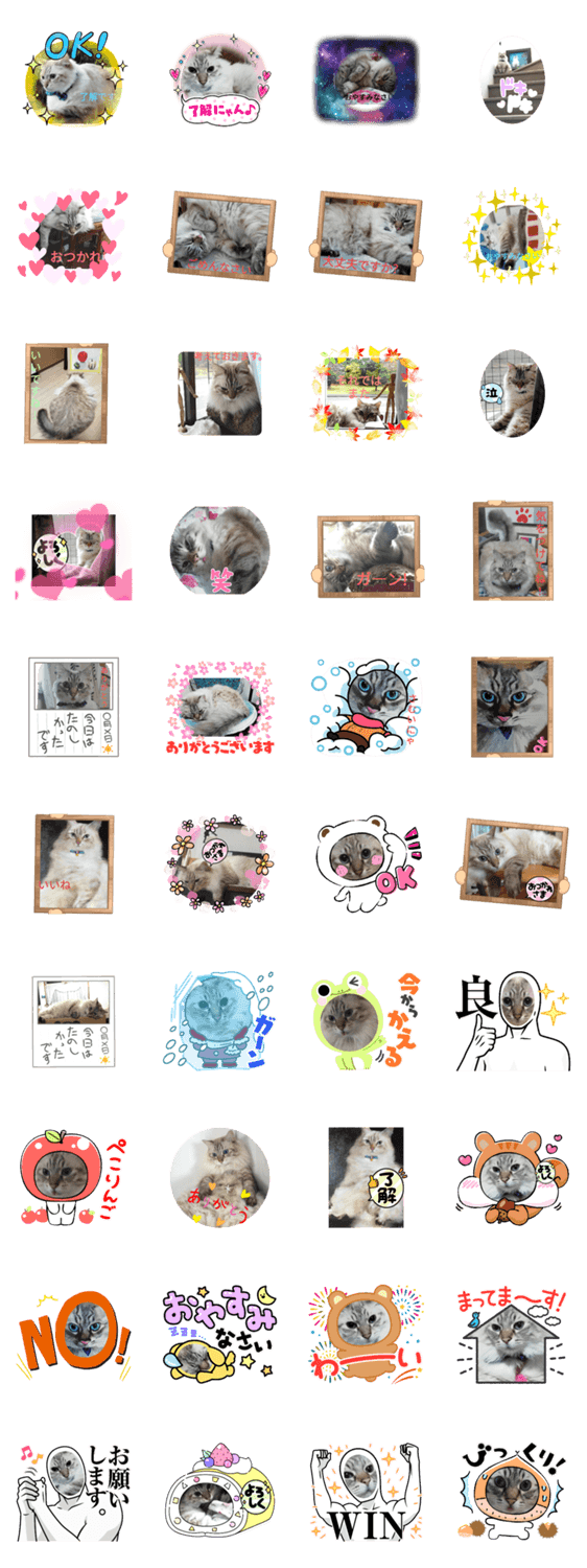 白ネコのあいうえお・・・ってるスタンプ