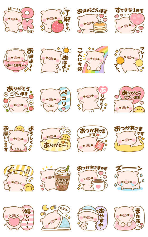 ぽんぽここぶたのぽこちゃん♪が可愛く飛び出すカラフルなスタンプです。毎日使えます。