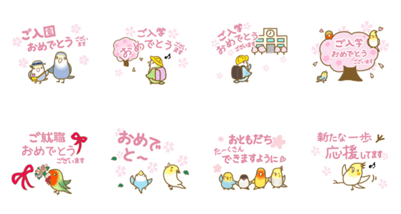 インコフレンズの入園、入学、就職お祝い -LINEスタンプマニア