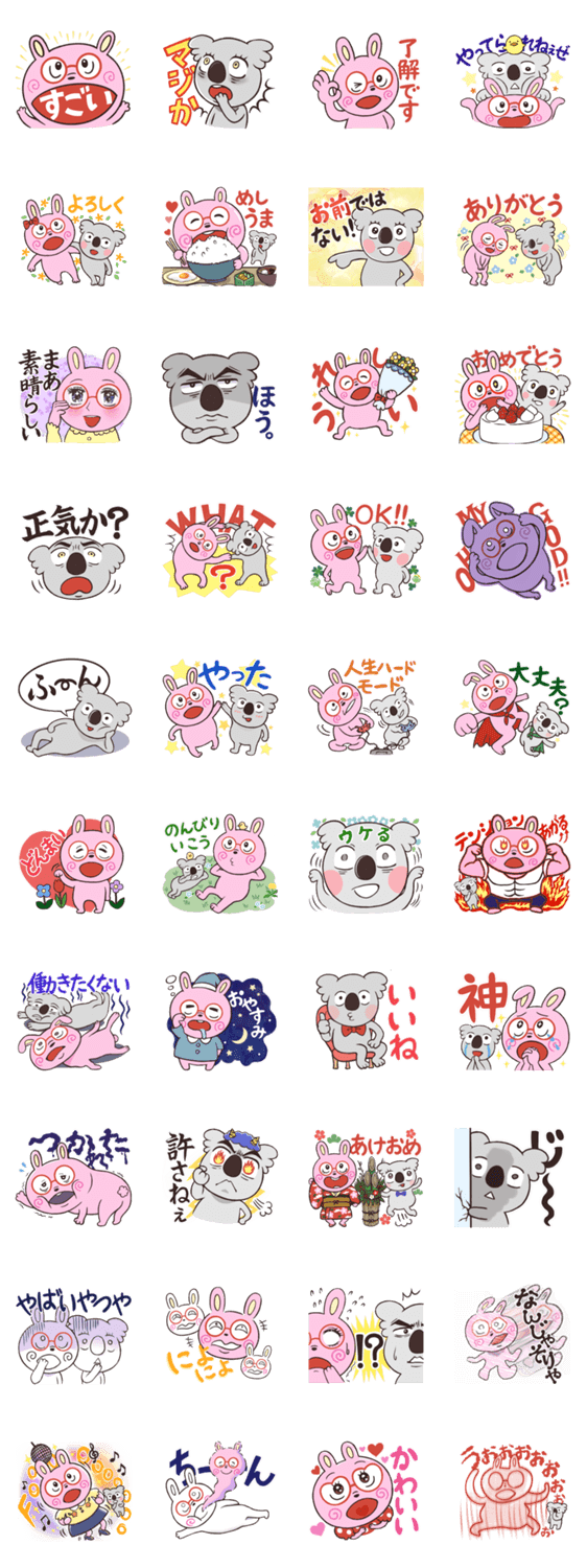動きがおちゃめな魔女っ子うさりーと愉快なおともだちのこあらのスタンプです♪