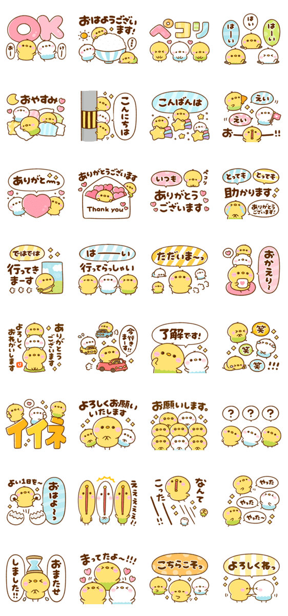 ぴよことインコ(?)の毎日使えるゆるくて大人かわいい♪スタンプです。日常で使える挨拶言葉や気持ちが伝わるリアクションまで幅広く揃ってます♡