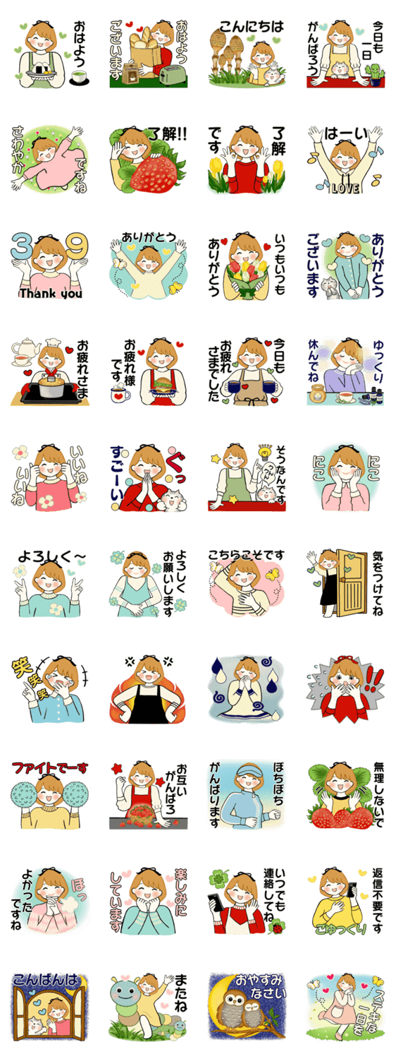 ほんわか春の日常スタンプです。 使いやすい挨拶や優しいメッセージ。 芽吹く春が元気を運びます。 トークに花を咲かせて楽しんでね。