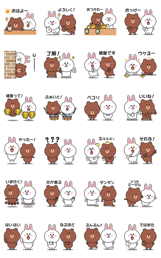 ブラウン&コニーの日常でよく使う短い言葉を集めたとっても使える飛び出すスタンプの第二弾です♪あなたの気持ちを、短くシンプルに届けてください♪ ※BROWN & FRIENDS をみんなでつくろう!キャンペーン参加スタンプです