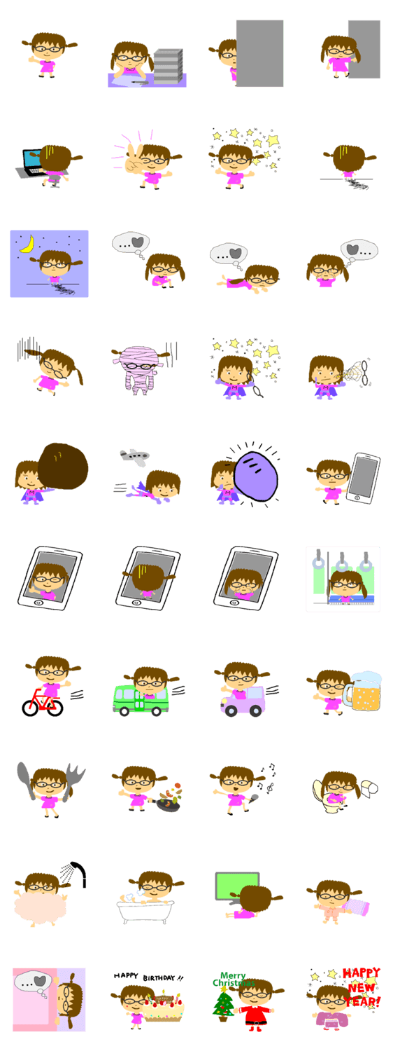 少しシャイでネガティブ思考な「めがねGIRL」。ネガティブパワーがマックスになると「スーパーめがねちゃん」に変身します。めがねBOYのびくんの妹です。