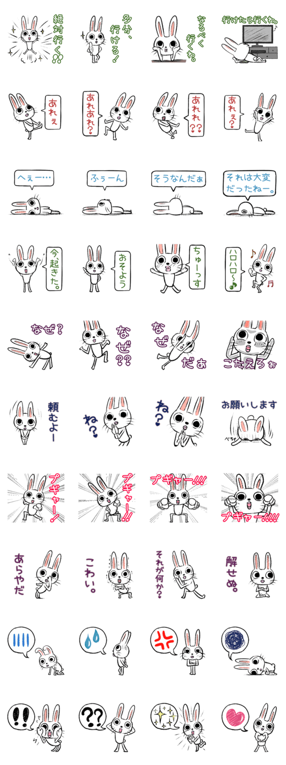 ギョロ目うさぎのスタンプ第7作目です。友達を軽くひねってあげまっしょい。