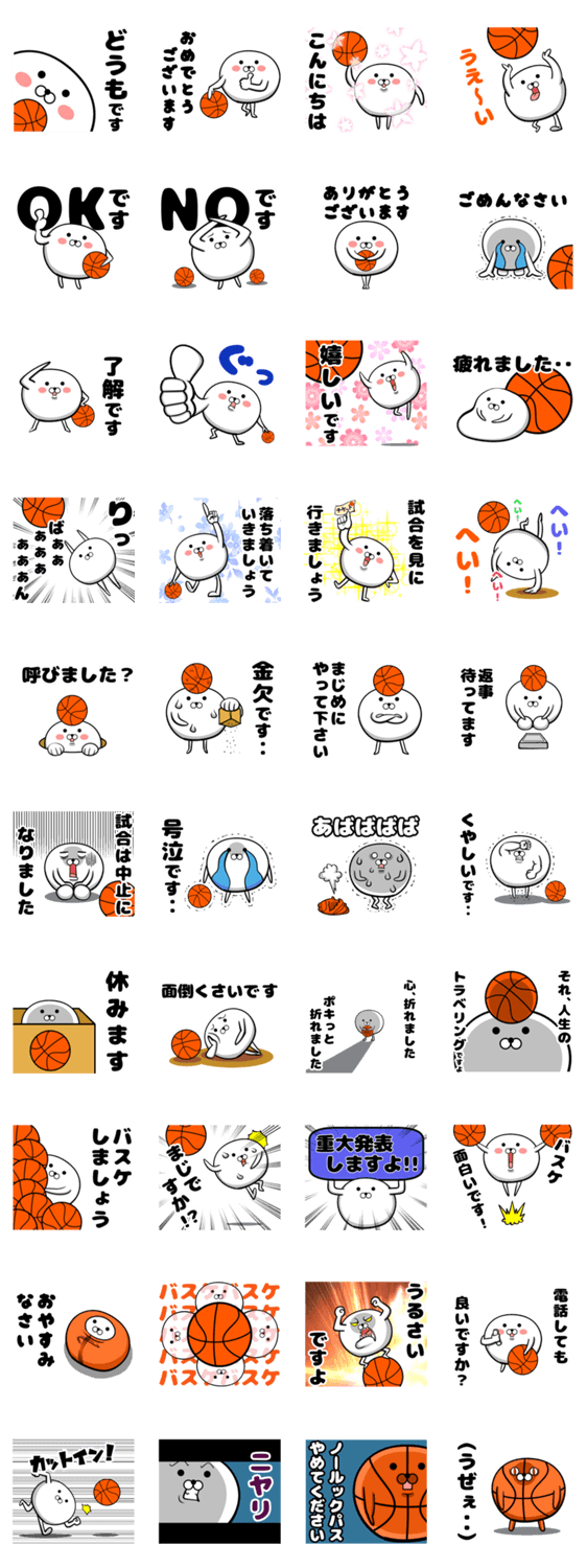 ちょっと可愛い動物があなたの会話を楽しくサポート!バスケットボールが好きな方や、バスケ部におすすめのスタンプ。こちらは敬語Ver.です。タメ口Ver.もありますよ♪
