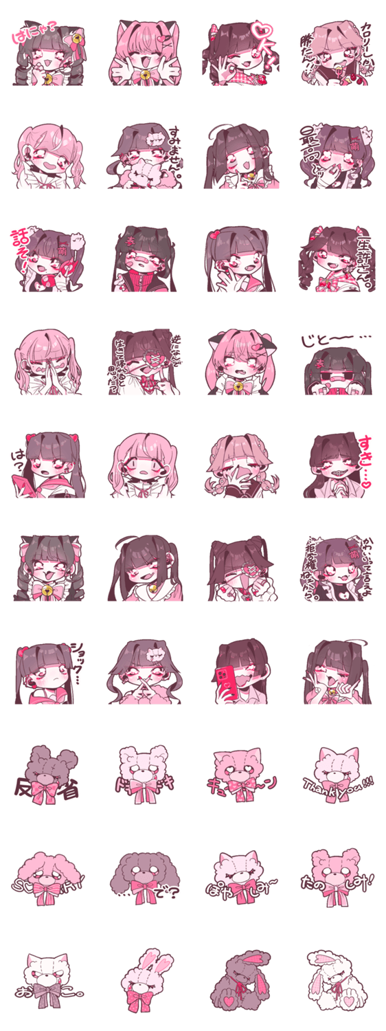 スタンプ説明 最高にかわいい女の子たちとぬいぐるみのスタンプ