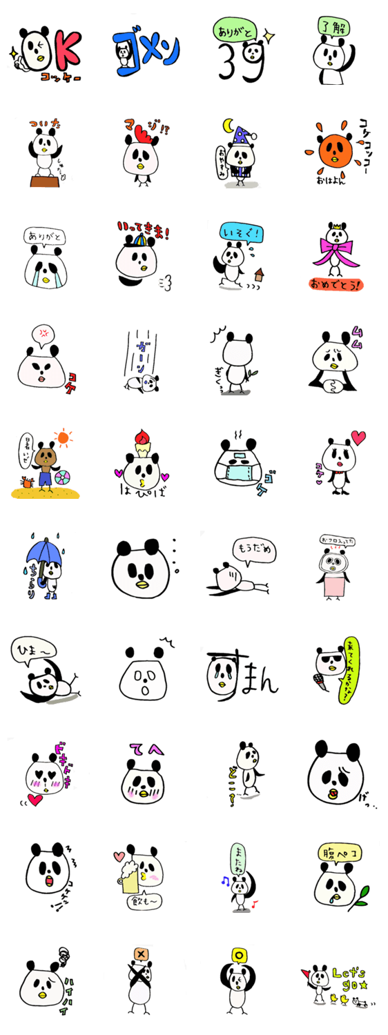 パンダとニワトリのハーフ「こけぱん」のスタンプです!「こけぱん」はLINEトークでの活躍を希望しています。