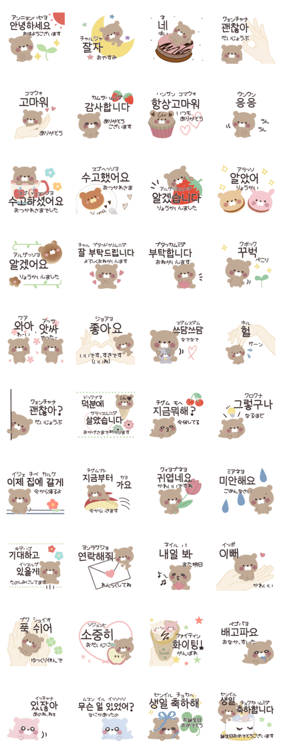 基本の挨拶*。くーまの韓国語と日本語 -LINEスタンプマニア