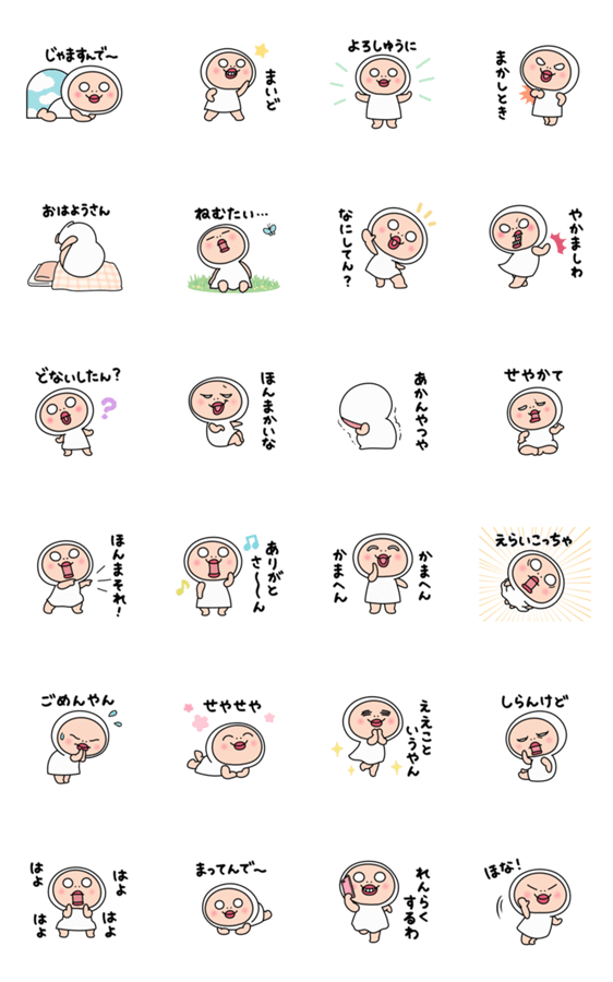 | スタンプ説明 | チビキャラしろめちゃんが動きまわる関西弁のスタンプ。 |