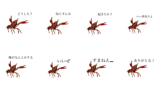 スタンプ説明 用水路のアニキ、ザリガニさんのスタンプです。