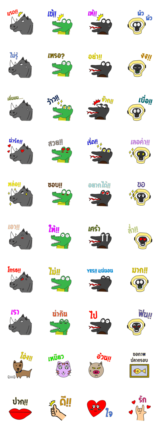 Release your creativity! Mix up your own funny words in chat! We are the gang of 4 buddies and friends : Rhino, Crocodile, Water Monitor, Gibbon. We are gang 4!