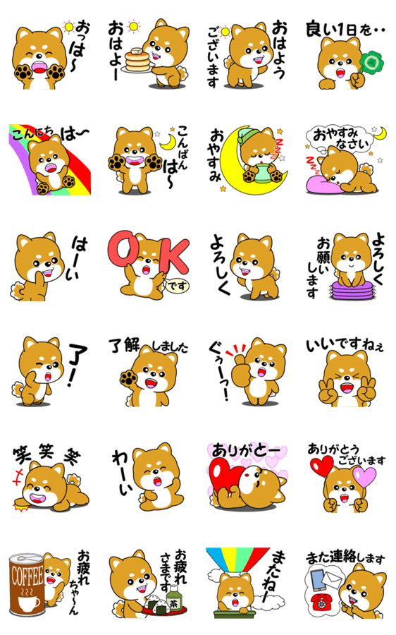豆柴が大きく飛び出して動きます。毎日のトークで使える「あいさつ」を揃えました。
