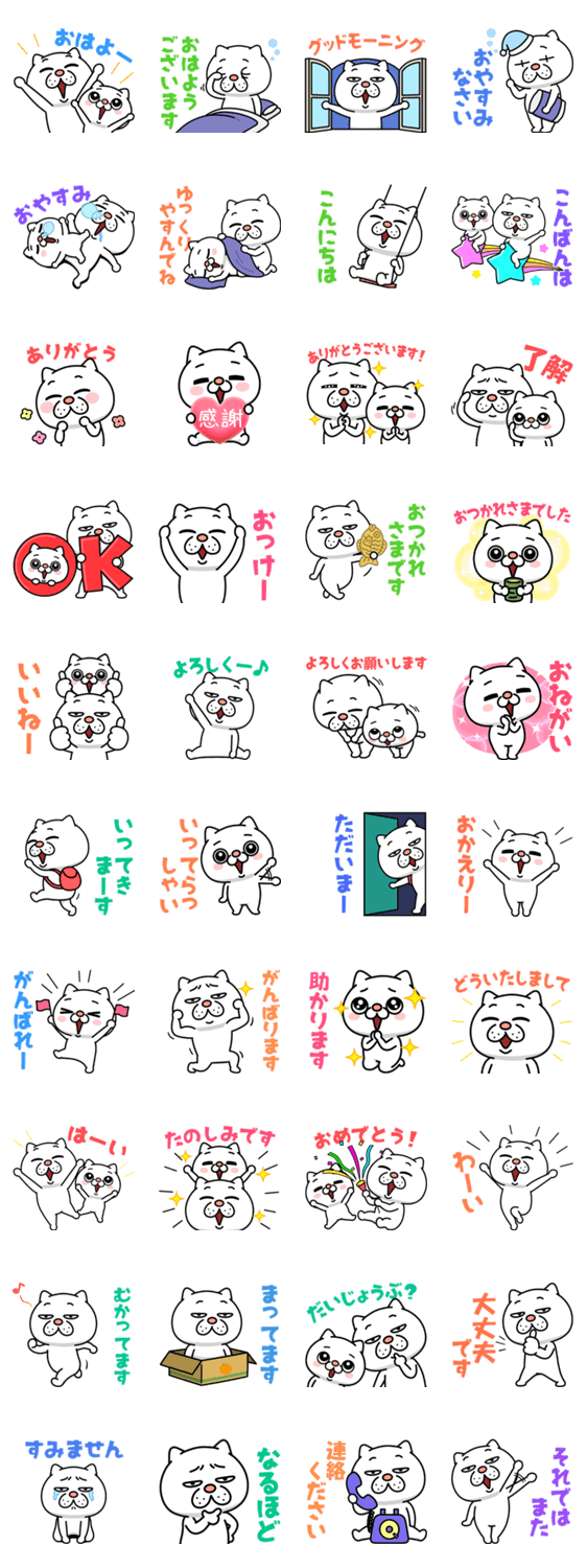 白ネコのあいうえお・・・ってるスタンプ