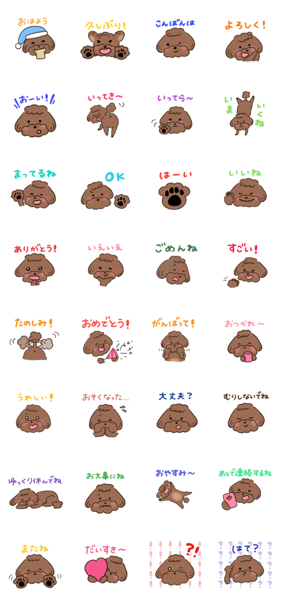 チョコレート色のトイプードルのちょちょまる。ゆるくふわっとご挨拶するスタンプです。