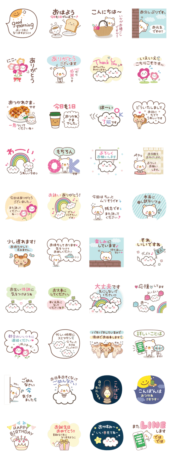 心のこもった言葉や毎日の挨拶から、急いでる時にパッと送れるようなスタンプまで♪年齢問わず、誰でも使えます♪敬語もたくさんあり!
