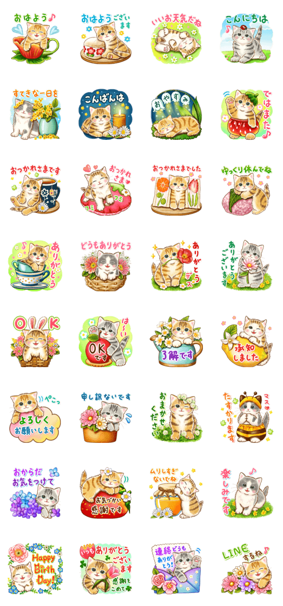 もふもふちっちゃい猫さんたちのスタンプです♪ 毎日使いやすいゆる〜く丁寧な言葉を詰め込みました♫