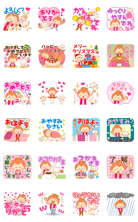 かわいいおばあちゃんとかわいいねこの、ポップアップスタンプです。